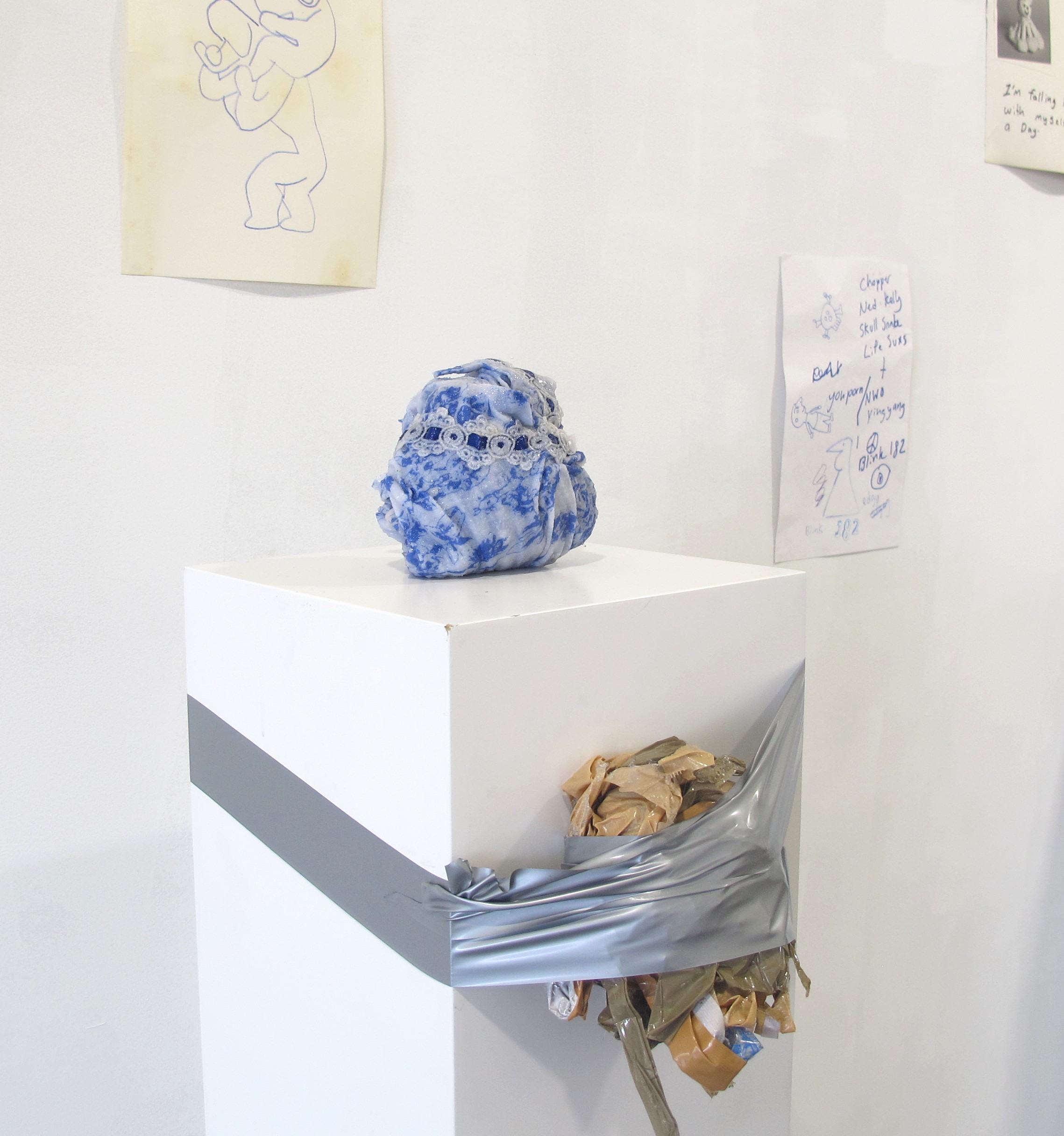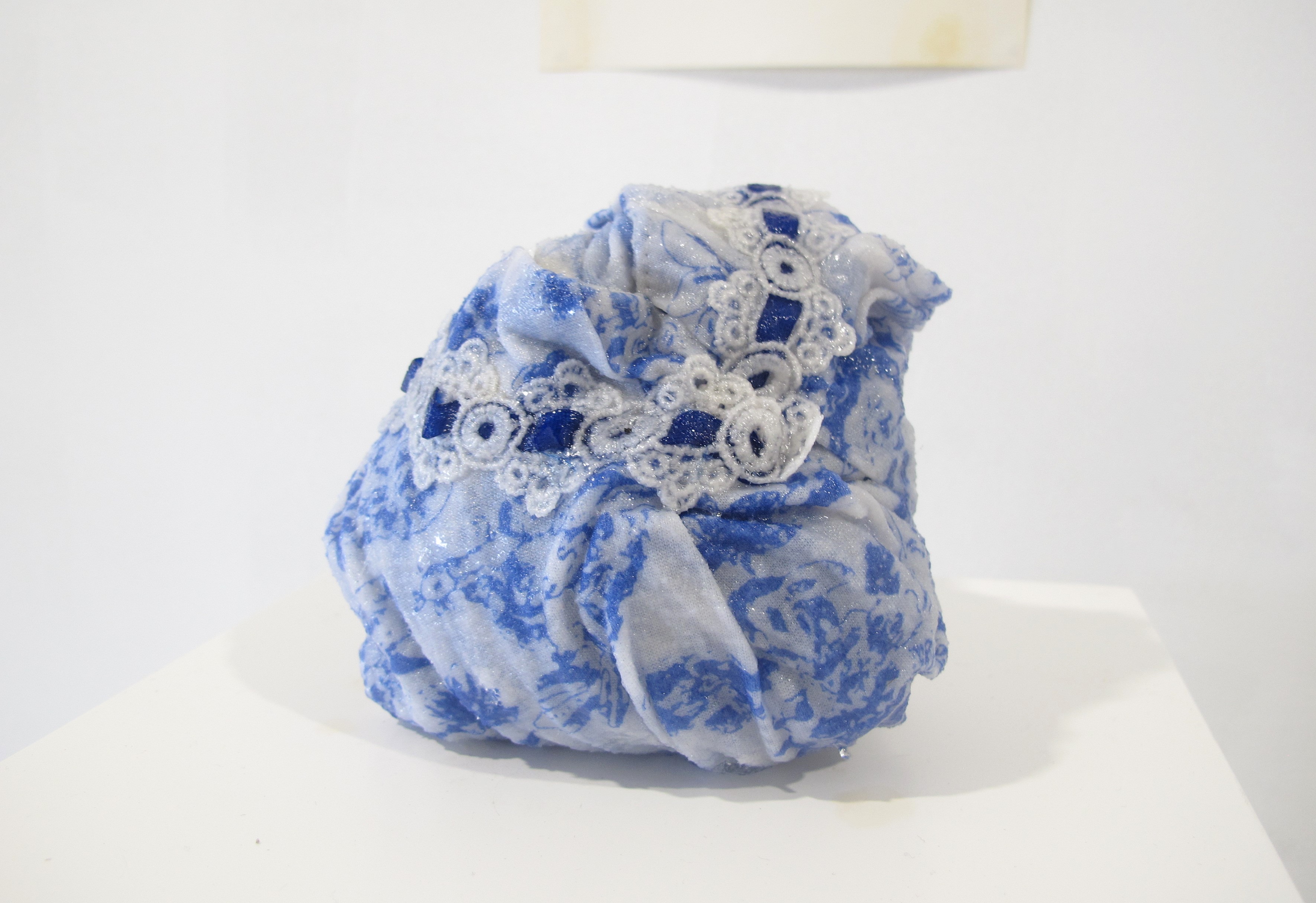Blue Moon 2023, resin & found fabric.